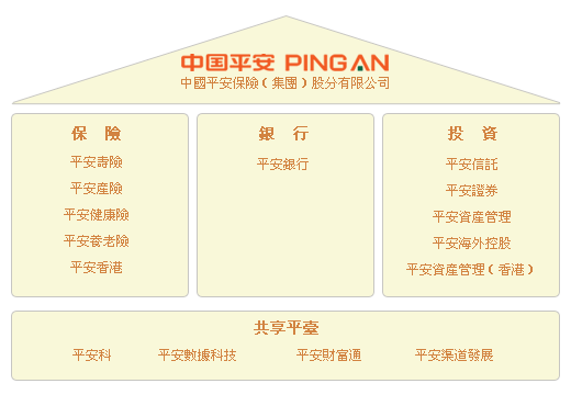 公司控股設立中國平安人壽保險股份有限公司(“平安人壽”)、中國平安財產保險股份有限公司(“平安產險”)、平安養老保險股份有限公司、平安資產管理有限責任公司、平安健康保險股份有限公司,並控股中國平安保險海外(控股)有限公司(“平安海外控股”)、平安信託投資有限責任公司(“平安信託”)、平安銀行股份有限公司。平安信託依法控股平安證券有限責任公司,平安海外控股依法控股中國平安保險(香港)有限公司,及中國平安資產管理(香港)有限公司。