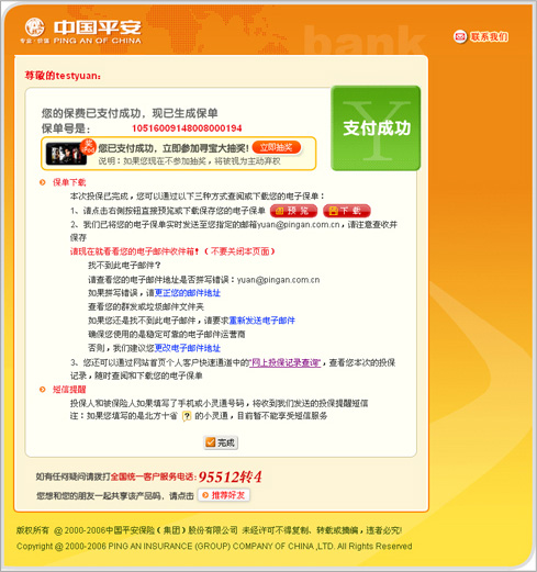 第六步:页面自动给出反馈,您的支付是否成功。