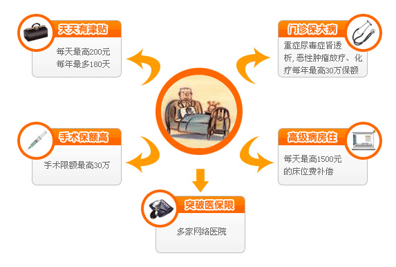 | 附加住院定额给付医疗保险 | 住院定额给付 | 10元/份/天×20份 | ||