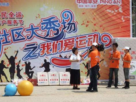 6月3日上午,艳阳高照,锣鼓喧天,风景秀丽的李沧区百果山风景区华龙山庄热闹非凡,青岛电视台《社区大秀场之我们爱运动》第三场决赛录制在这里盛大举行。从平安客服节社区海选活动中脱颖而出的30位优秀客户参加了此次决赛。