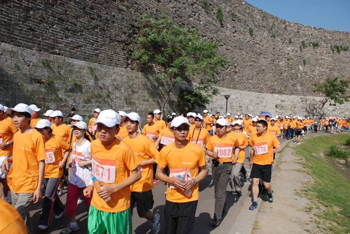 活动当日,平安人寿江苏分公司副总经理周京洪、江苏省青少年发展基金会主任张志方先后致辞。伴随着五彩礼花缤纷绽放,1500余名南京市民身着统一服装,沿着环湖路,在古老的明城墙下正式起跑。热情的跑步队伍中,有活泼可爱的儿童,也有精神矍铄的老者,还有温馨甜蜜的三口之家,他们在奉献爱心和健康运动的感召下,共同汇成了一条橙色的爱心长河。