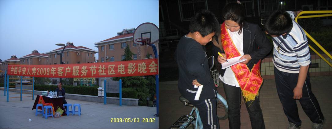 2009年5月3日,在美丽的四周环水的颐和庄园举办了中国平安人寿2009年客户服务节社区电影晚会,这也拉开了沧州平安人寿2009年度客服节的序幕。