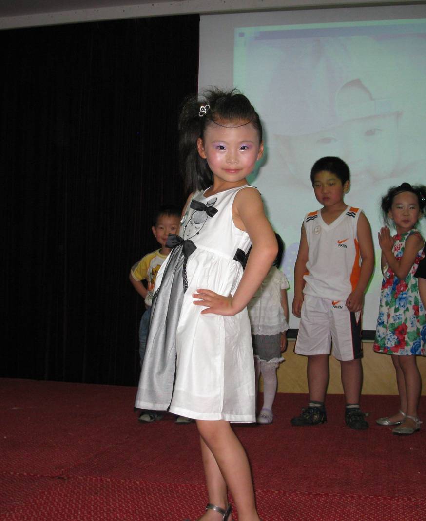 只见穿着桔红色T恤的平安员工们有的忙着指引客户签到,有的忙着给客户们分发活动材料,有着则忙着给小朋友贴参赛号码牌……。再来看看参赛的小朋友们,个个都是被父母精心打扮过的,特别是女孩子,衣着华丽不说,头发也被专业造型过,还洒满了亮粉,在灯光的照耀下还真有一股巨星的风范呢!